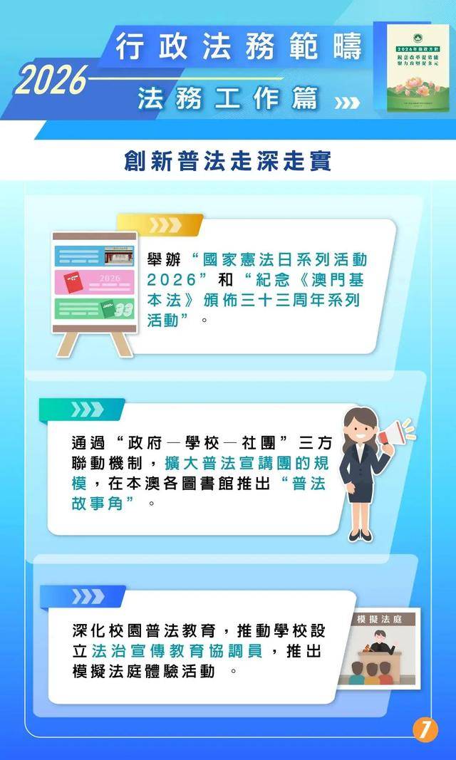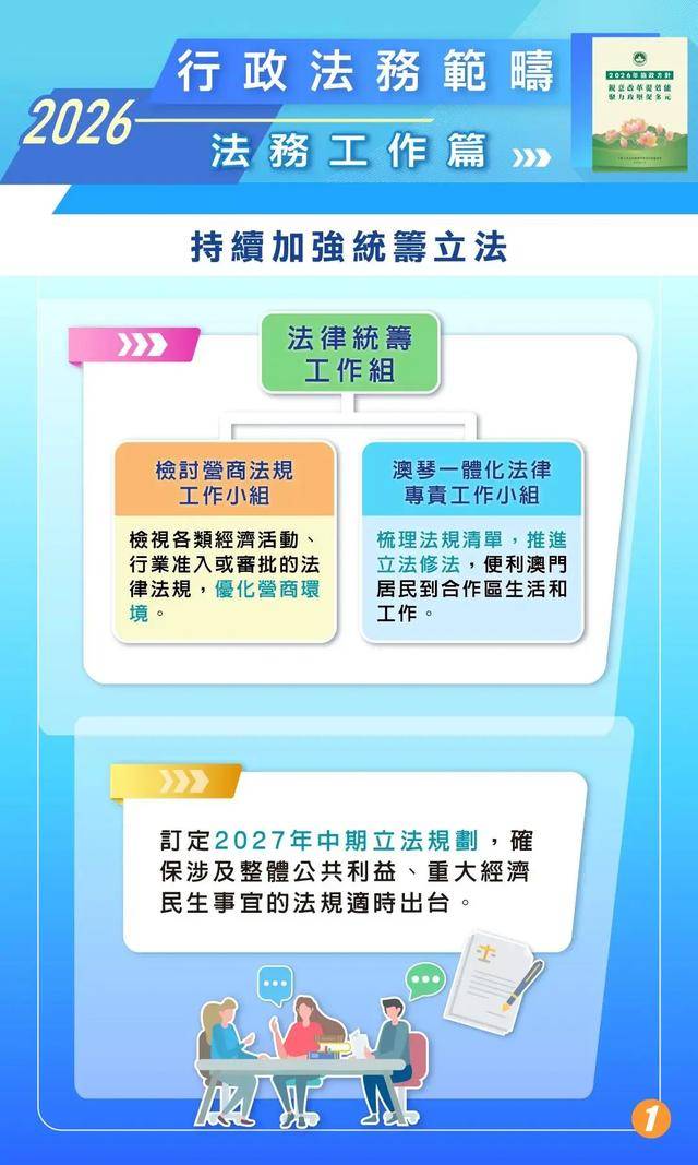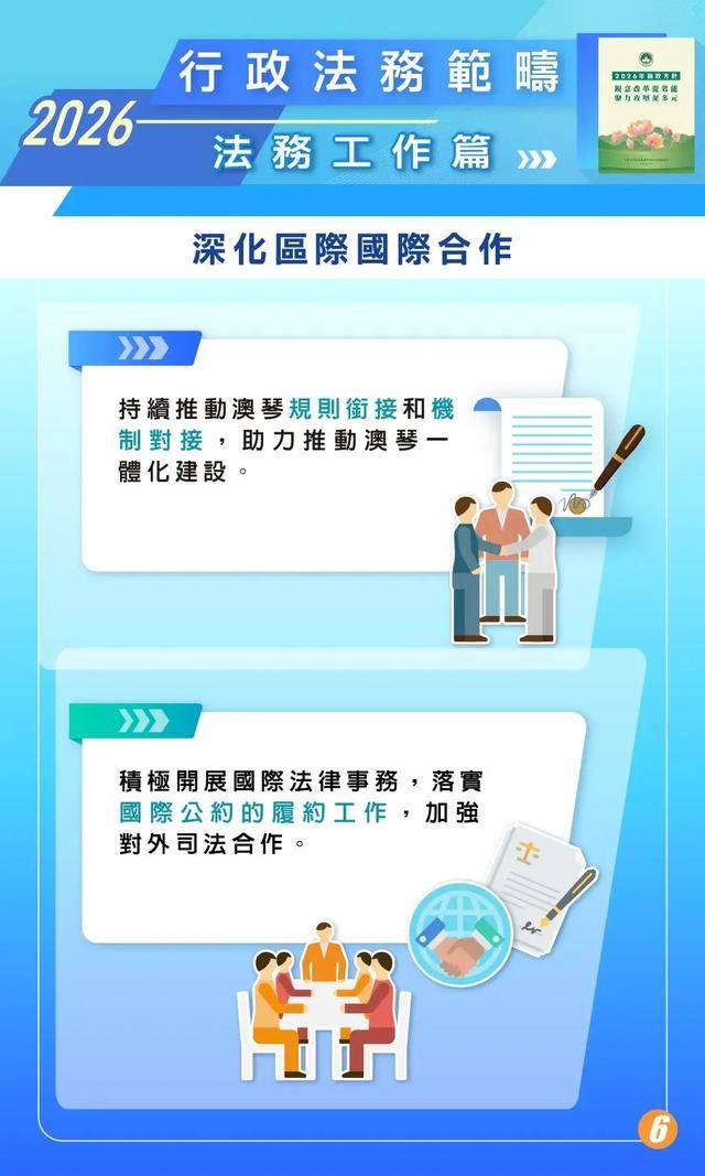 特区将出力加强法制扶植,涵盖落实总体不雅的要求、优化营商、公共行政、推进经济成长、加强平易近生保障及澳琴一体化扶植等方面,并有序推进的检讨及修订工做,积极回应社会经济成长的要求,营制优良的。