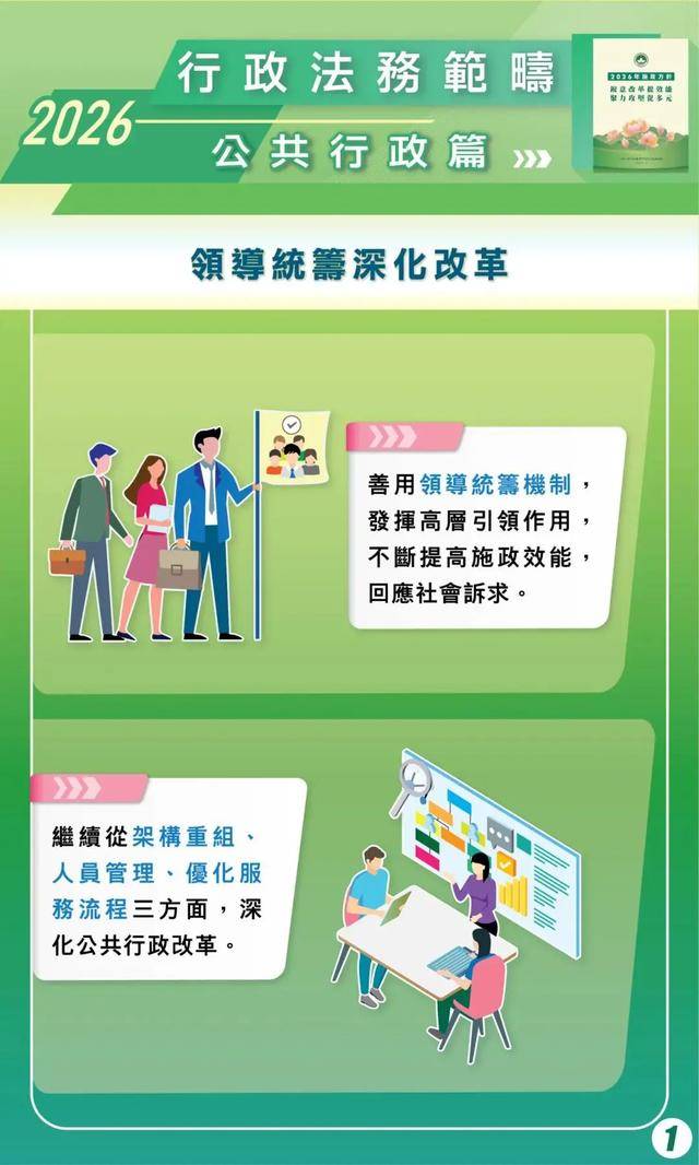 特区将持续善用公共行政带领及统筹机制,充实阐扬高层引领感化,强化跨部分统筹协调,继续从架构沉组、人员办理、优化办事流程三方面深化公共行政,不竭提拔特区管理效能。