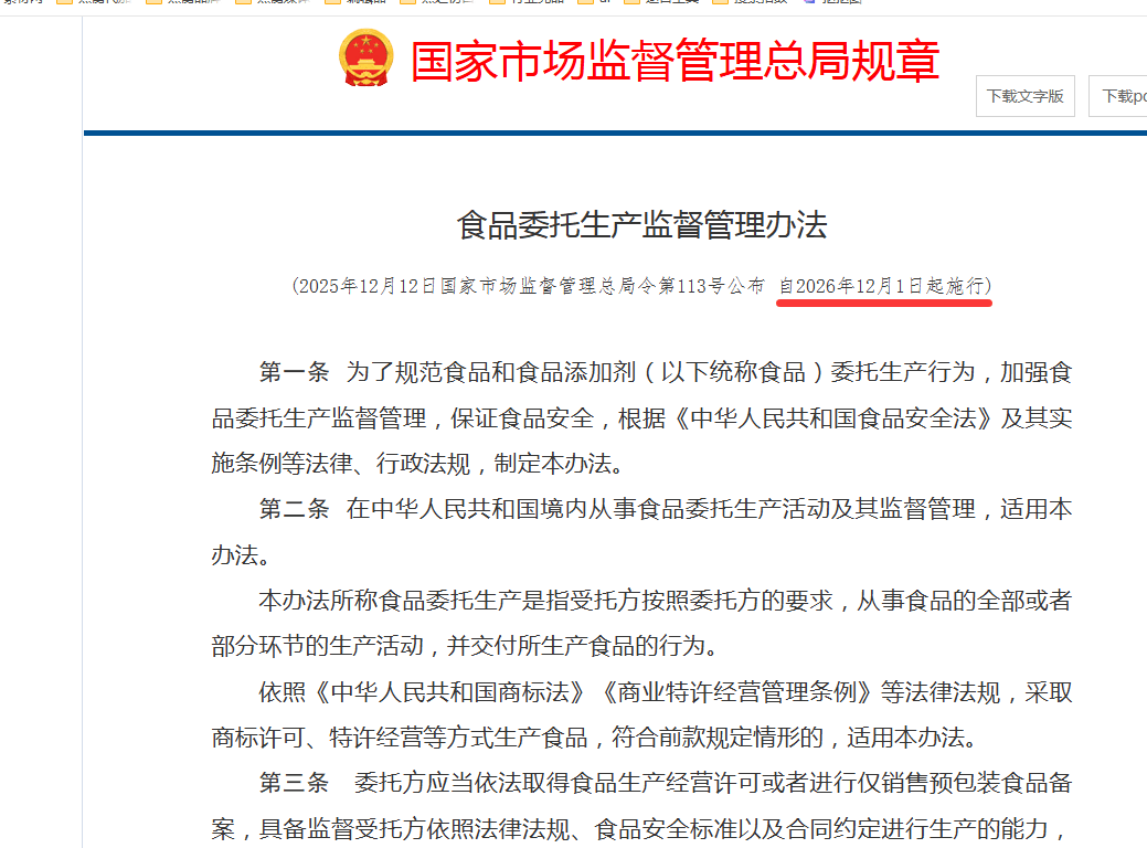 。这项被称为“史上最严委托出产新规”的出台,标记着食物代工行业将辞别“贴牌即甩责”的粗放时代,进入。