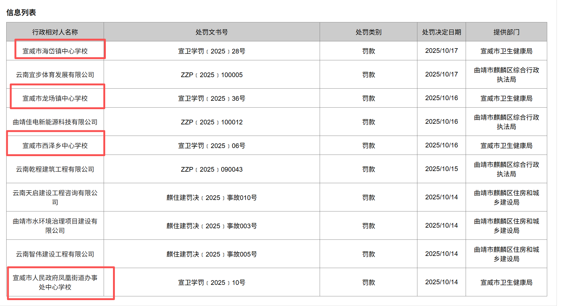 磅礴旧事梳剃头现,此次被惩罚的学校名单包罗宣威市海岱镇核心学校所属宣威市海岱镇岩上村完小、宣威市龙场镇核心学校所属的宣威市龙场镇旧营完小、宣威市西泽乡核心学校所属的宣威市西泽乡睦乐村完小、宣威市人平易近凤凰街道处事处核心学校所属的宣威市凤凰街道大屯小学。宣威市卫生健康局的惩罚根据为《中华人平易近国流行症防治法》,别离赐与前述学校罚款2000元。宣威市地处云南高原东北部,是云南省生齿第二大的县级市。正在本年教师节前两日,宣威市第七届人平易近召开第85次常务会议,会议听取了《宣威市中小学校园食物平安和炊事经费办理工做环境演讲》等内容。值得关心的是,10月12日,有媒体报道称云南曲靖织密监视网 “校园餐”成“安心餐”,此中提及针对以往学校分离采购模式下持久存正在的食材质量难控、成本虚高、廉政风险储蓄积累等问题,今岁首年月,宣威市将中小学食堂收回由学校自从运营办理,并正在全域奉行食材同一阳光集采。上述报道还披露,曲靖市纪委监委结合市教育体育部分,342家大食材供应商、13家校外供餐单元底数根本上,环绕资金办理、食材采购、食堂办理等沉点环节,对全市各级各类学校进行拉网式排查,发觉并鞭策处理食材供应质量参差不齐、食材成本虚高、审计部分对4个县(市、区)开展农村权利教育阶段养分改善打算资金审计,共查处“校园餐”办理范畴不正之风和问题54件100人。