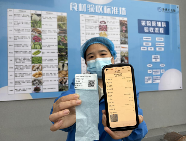 “嘀——”一声轻响,仓库办理员胡贝贝掏出手机,瞄准亳州二中订制的“前腿肉”二维码——屏幕霎时弹出:供应商、动检号、铅汞检测成果……“数据一跳出来,谁还敢‘混水摸鱼’?”她说。