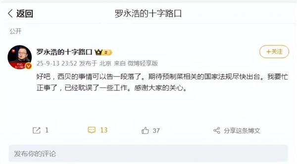 西贝创始人贾国龙称将告状罗永浩,并发布罗永浩吃的食物,旗下餐厅还推出了罗永浩菜单,并暗示餐饮行业不回避预加工菜品,但西贝不是预制菜,国度对预制菜有严酷定义。“太好了,万众等候!!! 再次沉申我的立场(免得被讹传和):1、我不否决预制菜,正在某些环境下,我以至会自动选择预制菜,好比图省事儿,赶时间,没胃口时对于一劣等等。2、既然预制菜,餐馆当然有权力用预制菜,但消费者有权晓得餐馆能否利用了预制菜。”据报道,国度卫健委从导的《预制菜食物平安国度尺度》草案已通过专家审查,即将向社会公开收罗看法。罗永浩还正在微博分享了对预制菜和消费者知情权的文章,文章题目为《不怕你预制,怕你不告诉我》。