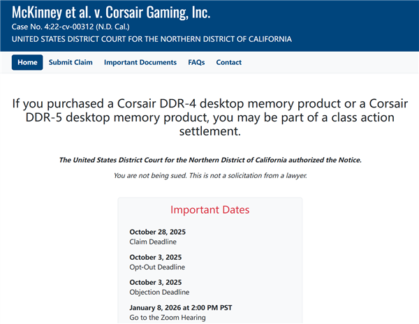 快科技9月14日动静,大师经常看到各类高频内存产物,DDR4-6400、DDR5-8000之类的,可是正在美国,海盗船因而惹上了讼事,还输了。这起集体诉讼被叫做“McKinney et al。 v。 Corsair Gaming, Inc。”,2022年倡议的。告状者认为:高频内存并不是默认就能够间接告竣的,它们并不合适JEDEC组织的尺度规范(DDR4-2133、DDR5-4800),而是厂商超频后的产品。要想告竣厂商的内存速度,不单玩家要具备必然的脱手能力,从板、BIOS固件、操做系统也要支撑,可是厂商并未明白申明,因而具有相当的性。